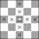 Rook: The rook moves in a straight line by any number of squares in any of the four cardinal (horizontal and vertical) directions.